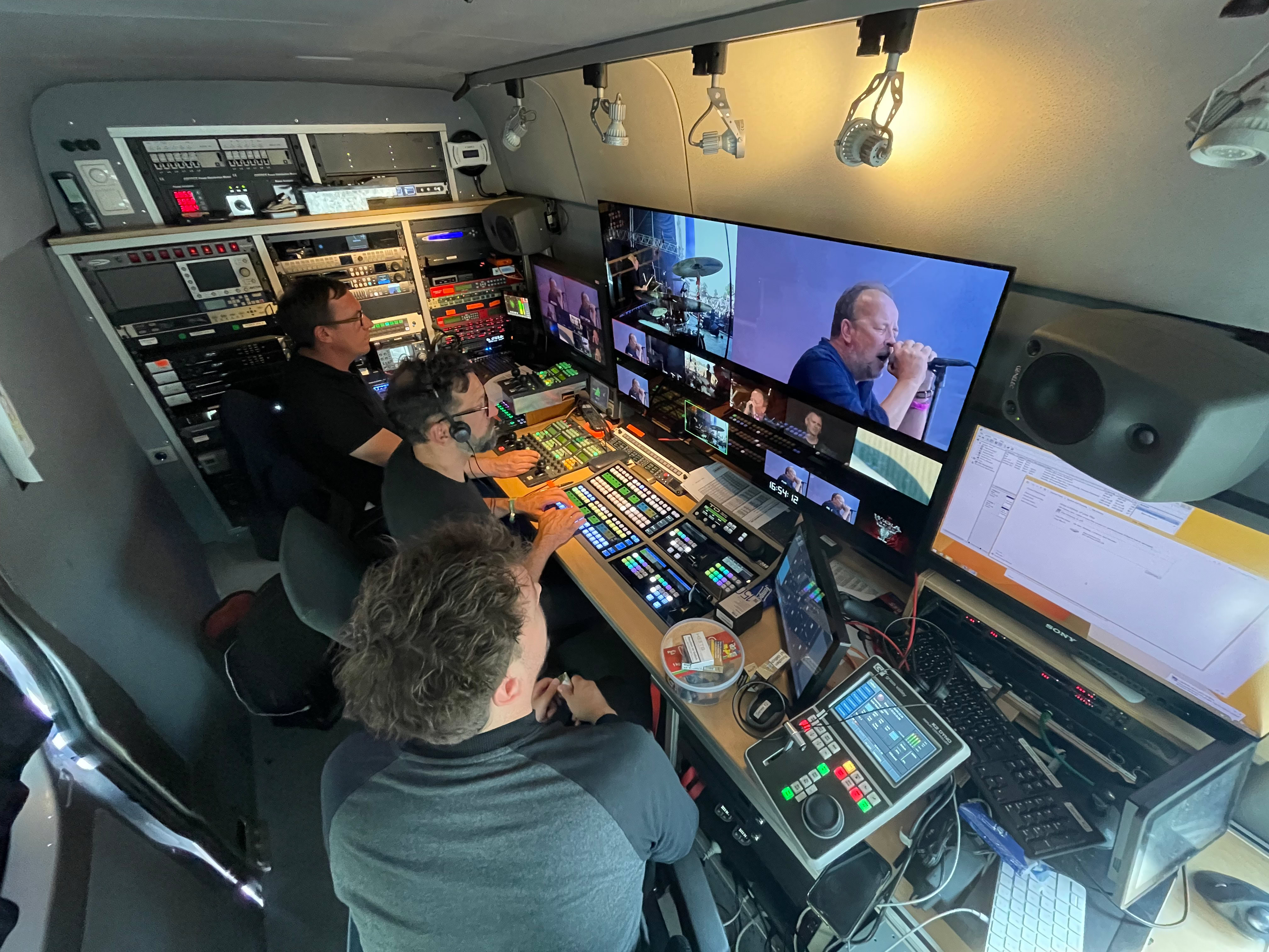 Im Auftrag von TVN durften wir in diesem Jahr mit sechs Kameras die Louder Stage in diesem Jahr produzieren. Zum einen habe wir die LED Wände bespielt und die Konzerte für die Telekom und andere Abnehmer übertragen. Das Kreativ Personal kam von Livenation. Unsere DSNG 2 HD stand direkt an der Bühne, der Sound für unseren Feed wurde im TV-Compound hinter der Hauptbühne gemischt. Über Glasfaser waren wir auch mit unseren Sender-Regien im TVN Ü3 und in der Bullhead City verbunden.